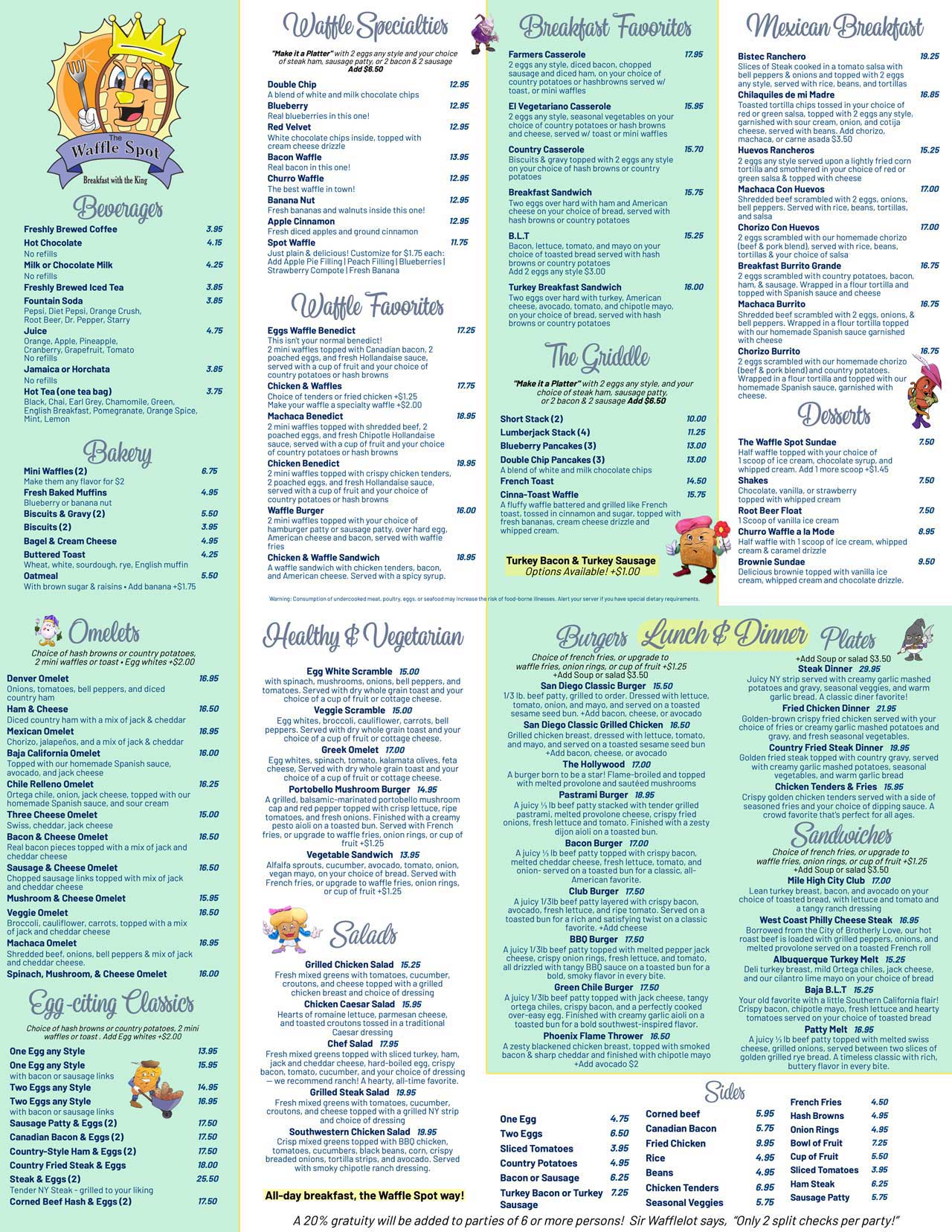 Explore our breakfast, lunch, and dinner menu in San Diego at The Waffle Spot. Known for our famous waffles and classic diner favorites, we serve hearty meals all day in Mission Valley at the Kings Inn.